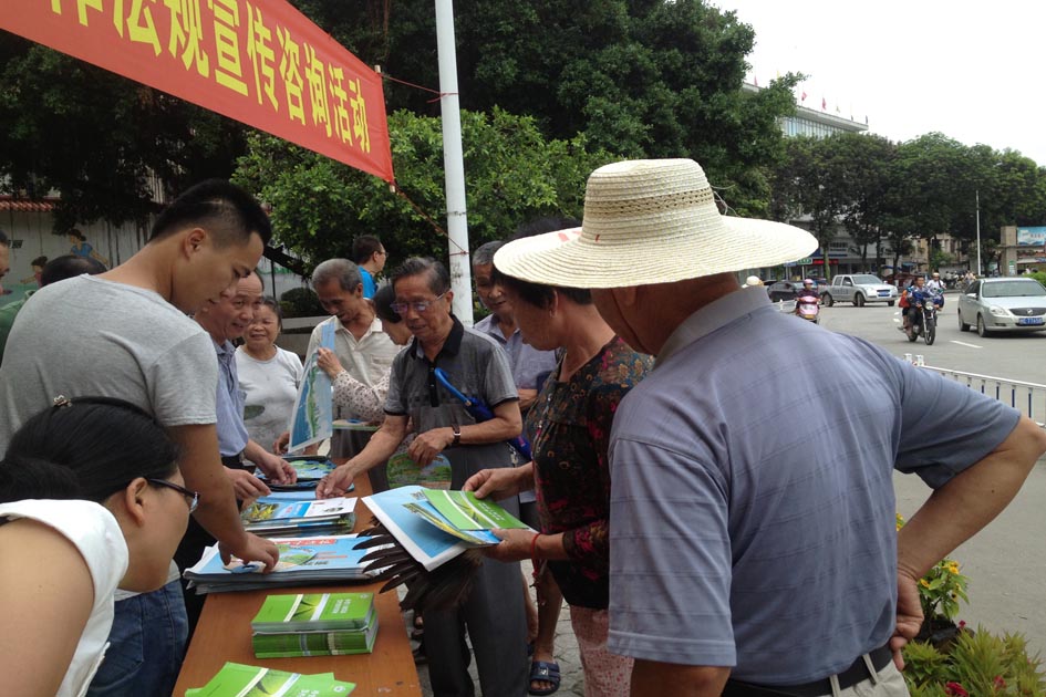 在第23個全國“土地日”宣傳活動期間,長泰縣國土資源局圍繞“珍惜土地資源,節(jié)約集約用地”主題,精心策劃組織開展了一系列主題宣傳活動。一是在縣城中心區(qū)圓池旁開展“第23個6·25全國‘土地日’法律法規(guī)宣傳咨詢活動”,各股室相關(guān)工作人員耐心為前來咨詢的群眾答疑解惑,并分發(fā)信卡、宣傳手冊、防災(zāi)知識、《海峽資源報》特刊等宣傳品600多份。二是各基層所在鄉(xiāng)鎮(zhèn)中心區(qū)舉辦各種宣傳活動,召開協(xié)管員座談會。各鄉(xiāng)鎮(zhèn)(場、區(qū))、縣直相關(guān)單位在縣電視臺點歌慶祝“6·25”土地日,充分利用媒體平臺大力宣傳土地資源節(jié)約集約的相關(guān)知識。三是印制第23個全國“土地日”信卡1000張,分發(fā)至縣直機關(guān)科局單位、各鄉(xiāng)鎮(zhèn)村領(lǐng)導(dǎo),進一步提高各干部職工的依法行政的水平。